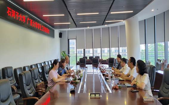 6月28日石河子大学学生工作部副部长张继珍一行3人来我校进行学生工作考察调研。我校学生工作部(处)部(处)长黄必春,学生工作部(处)副部(处)长王利军和相关教师出席座谈会,双方就学生工作信息化建设、大学生网络思想政治教育、学生精细化管理、学生资助工作等学生工作经验进行深入交流和探讨。
