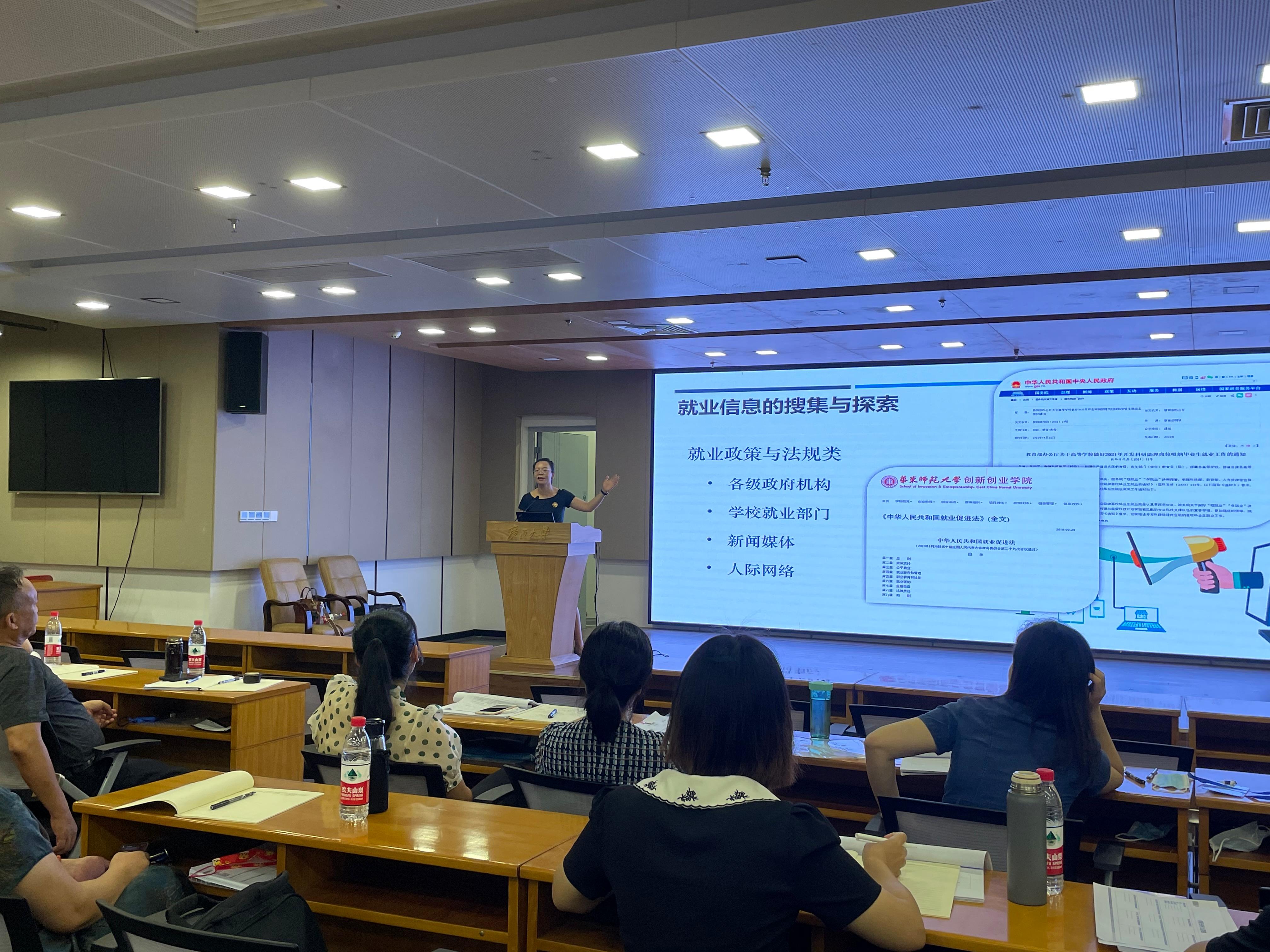 我校遴选了一批教学经验丰富、教学效果良好的教师组成教学团队,依托教育部全国就业中心统一研制的课程资料,结合广西高校学生生情、就业形势等,为培训班学员开展了5个模块、10个主题的课程培训。