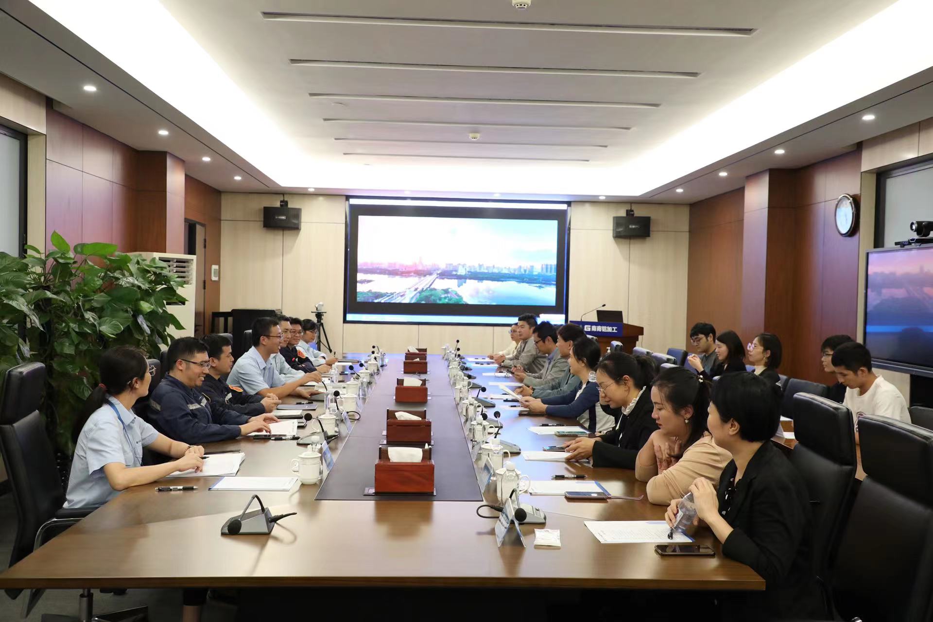 我校师生一行在广西南南铝加工有限公司党委副书记程海峰的陪同首先参观了公司的厂区,并认真聆听了公司的发展历史。随后,还与广西南南铝加工有限公司的相关负责人进行座谈交流,了解企业的用人需求和招聘计划。