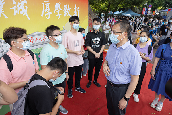 9月8日,是我校2022级新生报到的第一天,校长韩林海带队到迎接新生报到现场检查指导工作并到宿舍看望慰问新生。