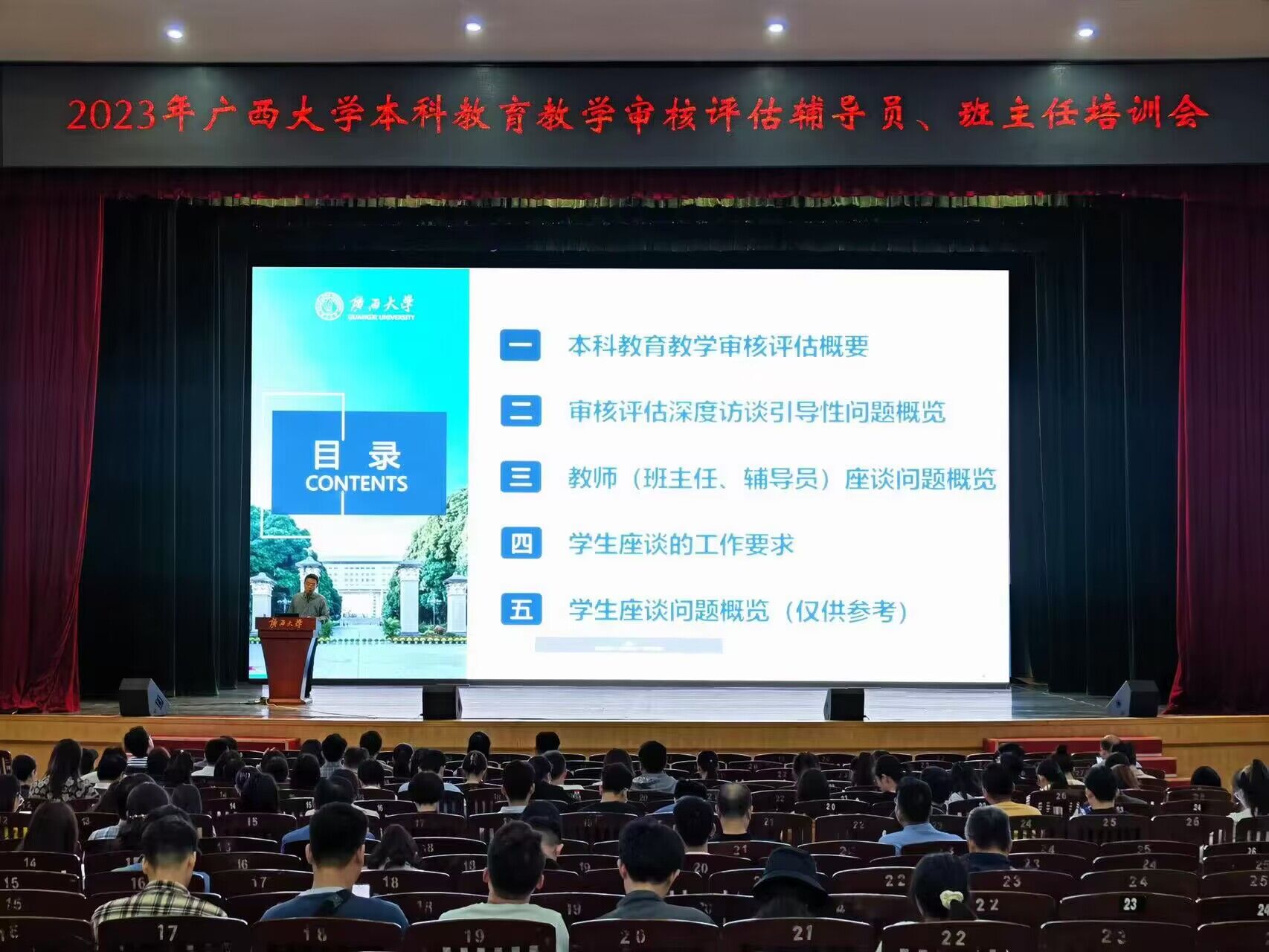 4月27日,我校在大礼堂举行本科教育教学审核评估辅导员、班主任培训会,辅导员、本科班级班主任共500余人参加培训会。会上,教务处副处长彭林欣对本科教育教学审核评估的主要任务、评估导向、评估内涵、线上评估流程、评估功能等内容作了详细说明,就如何在学生中做好宣传教育、学风督导、座谈指导等工作和与会人员进行了交流,向与会人员发起了“积极行动起来,以饱满的热情迎接新一轮本科教育教学审核评估”的倡议。