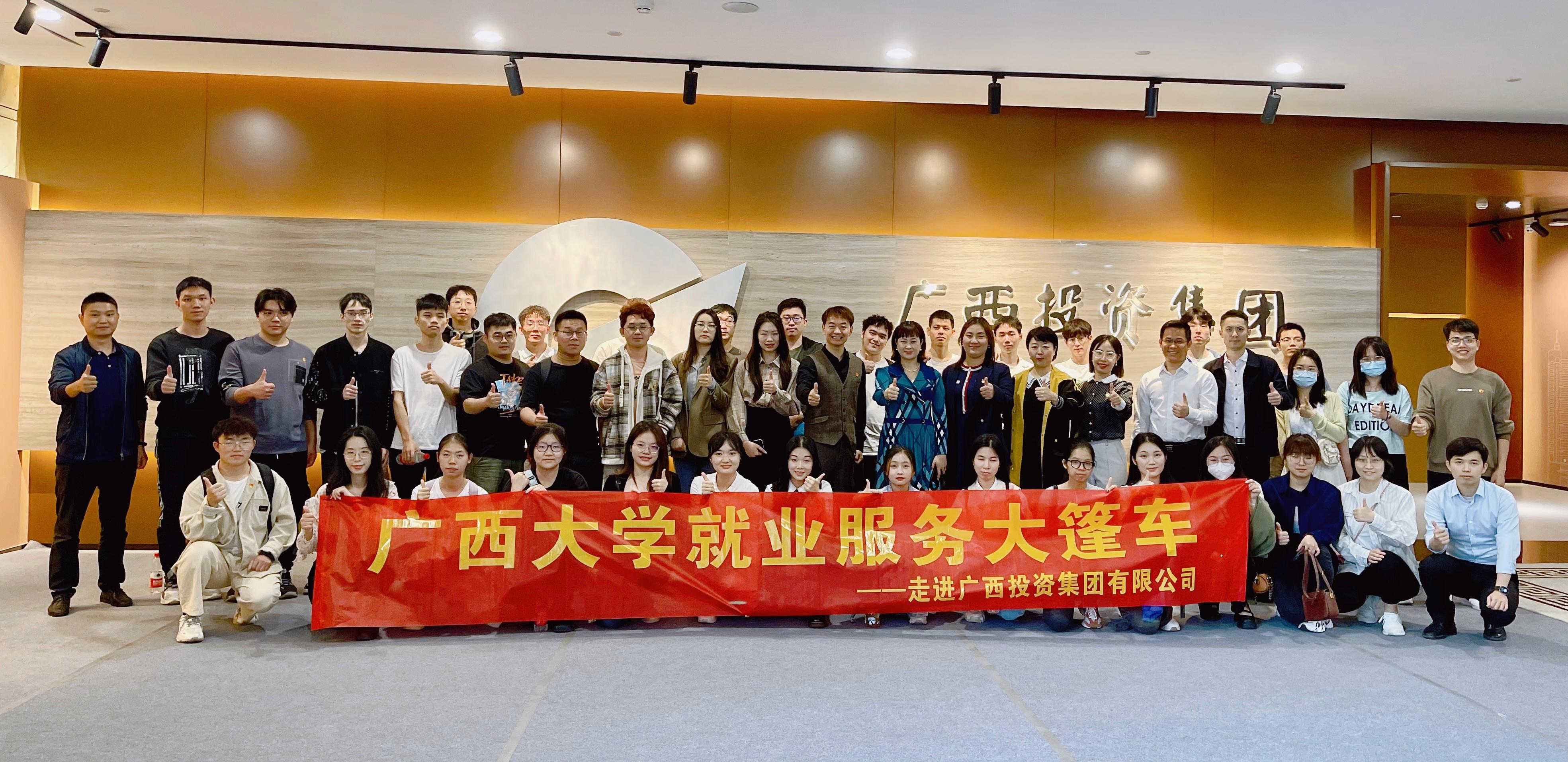 为进一步拓展学生就业渠道,促进学生高质量就业,5月9日下午,学生工作处组织近百名师生搭乘“就业服务大篷车”走进广西投资集团有限公司参观调研。