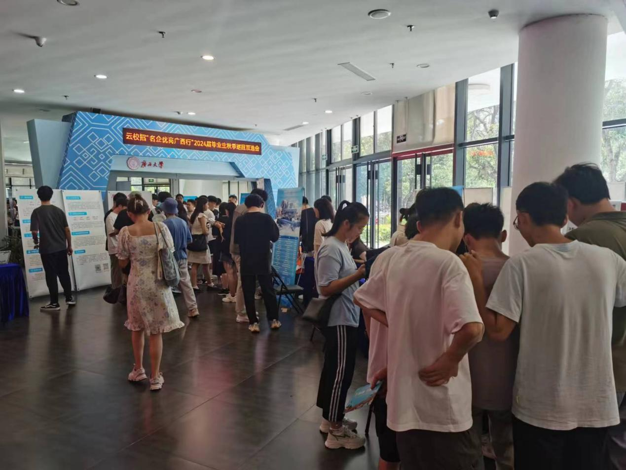 9月5日,“名企优岗广西行”2024届毕业生秋季(综合类)巡回双选会(beat365手机版官网入口站)在大学生活动中心一楼大厅举行。