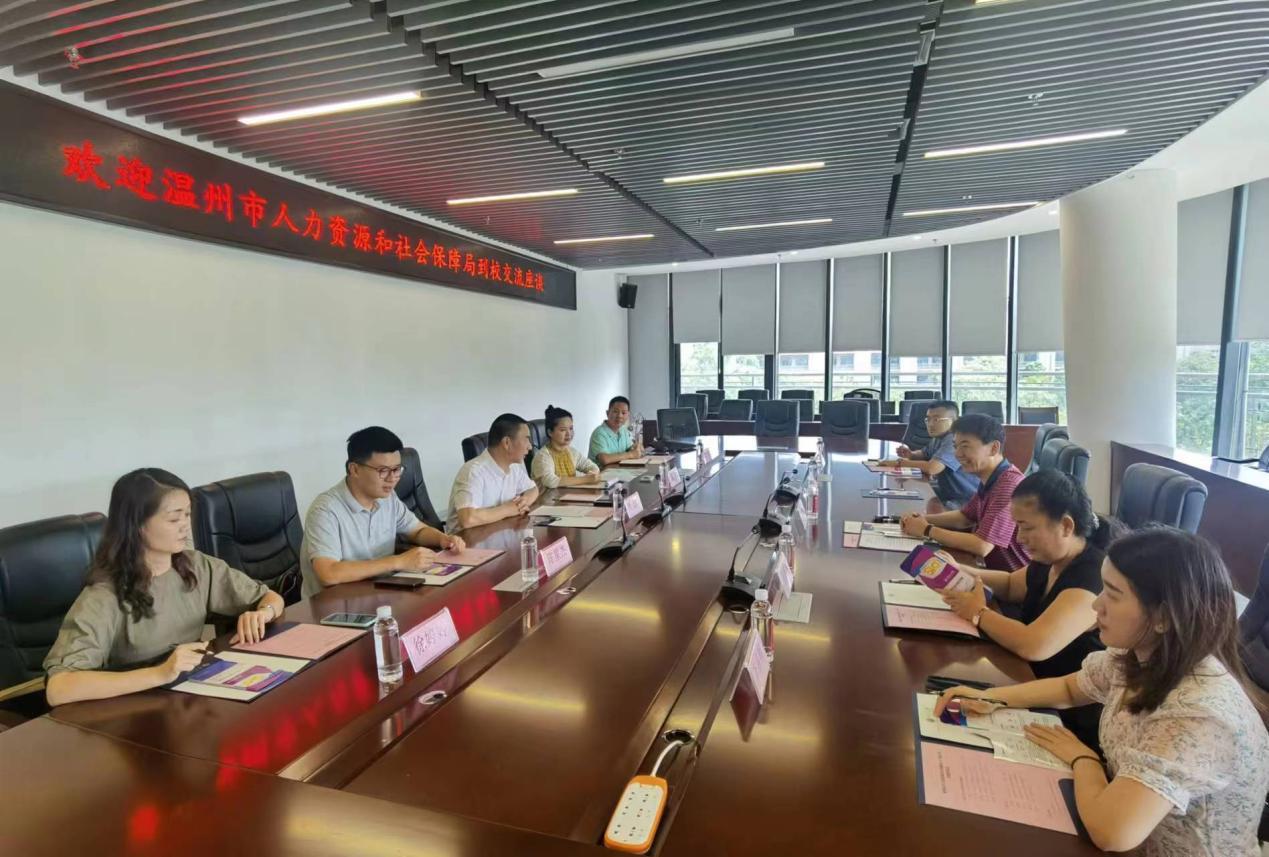 双选会期间,学生工作处副处长王利军及部分学院负责人与温州市人力资源和社会保障局进行人才招聘交流座谈,为进一步推动校地合作进行了深入交流。