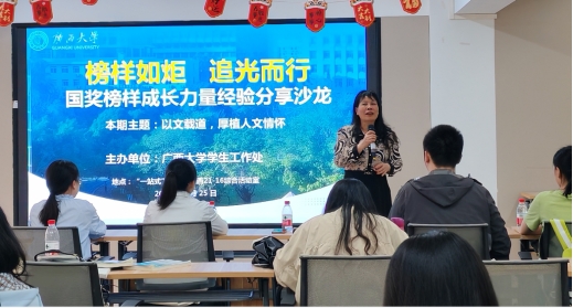 作为我校学风建设品牌活动,本次沙龙通过多元视角呈现优秀学子的成长轨迹,既彰显了学科特色,也凸显了“五育并举”的育人成果。学生工作部秦建丽老师在总结讲话中指出:“获得国奖,是优秀的见证,也是国家爱的力量,希望国奖学子做爱的接力棒和传递者,带动和帮助更多的同学,将个人的经验和知识转化为对社会有公共价值的智慧,创造更高的价值。同时也希望其他同学以国奖学子为榜样,树立目标,做好规划,从我做起,从现在做起,把追求卓越具体落实在行动上,不断超越自己,努力创造属于自己的辉煌。”