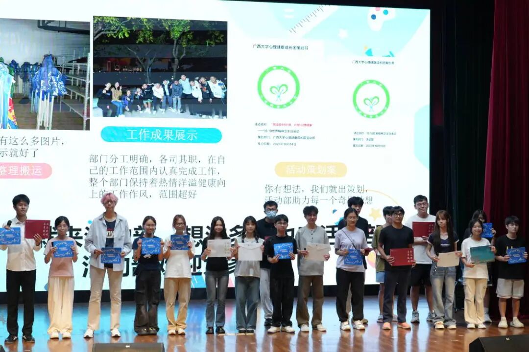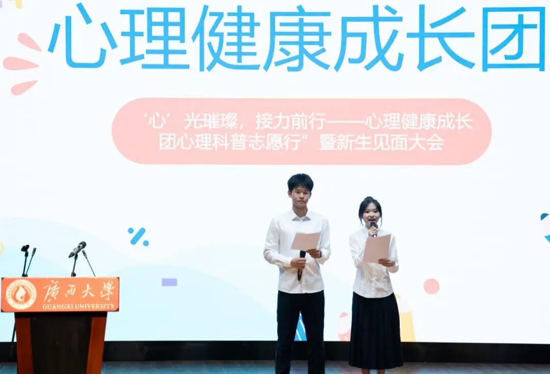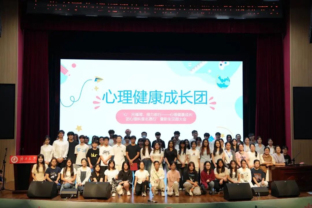 10月17日,beat365手机版官网入口学生心理健康成长团在大学生活动中心小剧场举行换届大会暨第八届新成员见面会。学生工作部(处)、学生心理发展指导中心姚璎珊老师及心理健康成长团全体成员参加大会。
