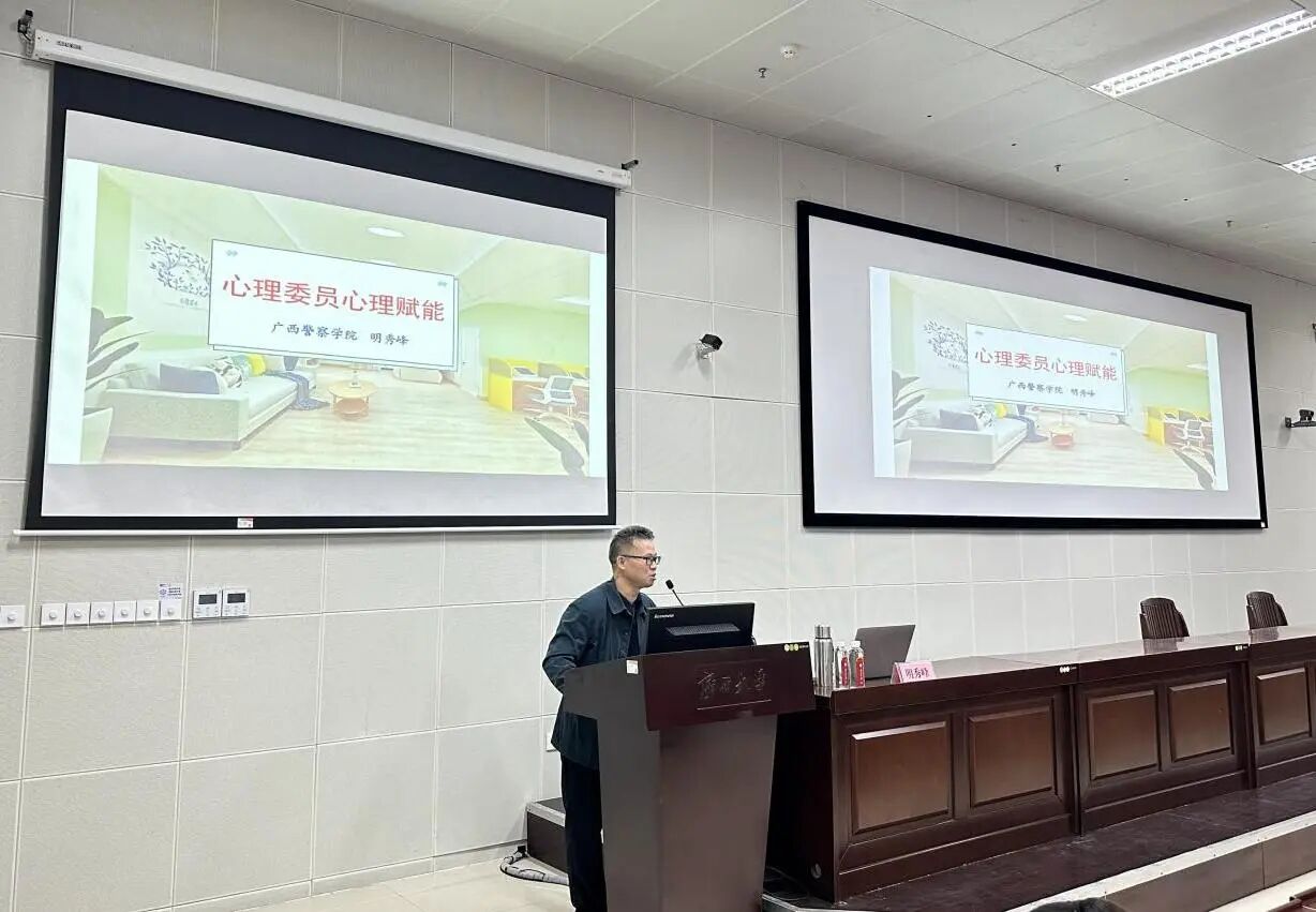 本次培训邀请广西民族大学大学生心理健康教育中心副主任毛小玲、广西警察学院心理中心主任明秀峰担任主讲嘉宾,采用“理论+技能”互动教学形式,聚焦心理委员的实际工作需要展开。