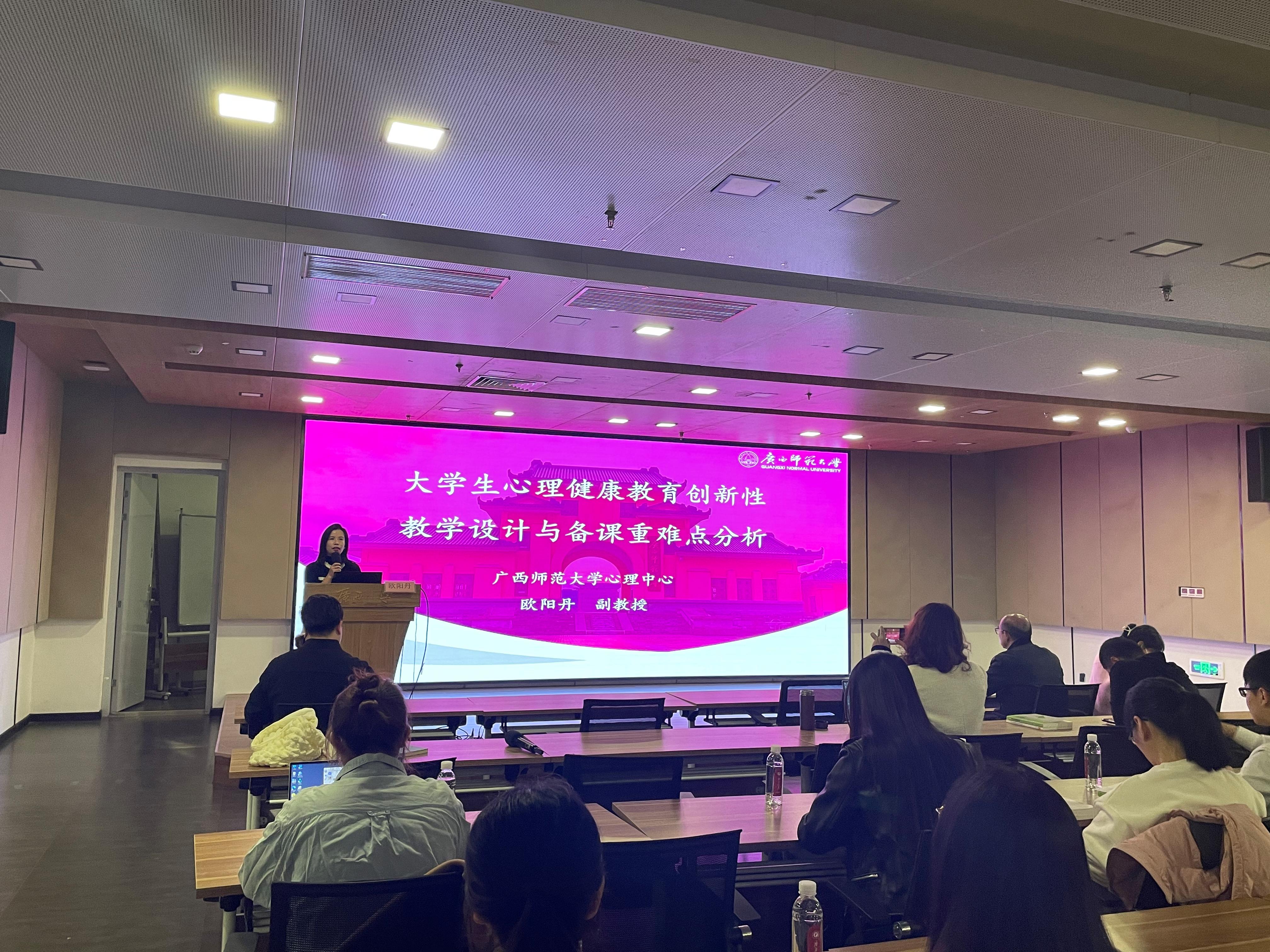 为进一步深化心理健康课程教学改革,强化不断提升心理健康教育课程师资队伍的授课能力与专业水平,发挥课堂教学在大学生心理健康教育中的主渠道作用,推动心理育人实效,学生工作部(处)于12月1日、4日组织了《大学生心理健康教育》课程集体备课会,广西科技师范学院黄群瑛教授、广西师范大学欧阳丹副教授应邀做专题授课。备课会由学生工作部(处)副部(处)长黄晋主持,学生心理发展指导中心专职教师及全体任课教师参与备课会。