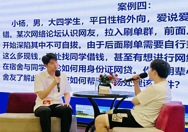 本次大赛由初赛和决赛两个部分组成。122支队伍经过激烈的初赛选拔之后,10支队伍30名同学脱颖而出进入决赛阶段。决赛围绕朋辈心理辅导技能展示展开,包括知识问答和谈心谈话等环节。参赛者需扮演朋辈心理辅导员的角色,与情景演员就某个心理案例展开谈心谈话,运用各种心理助人技巧,在沟通互动中帮助同学解决心理困扰。