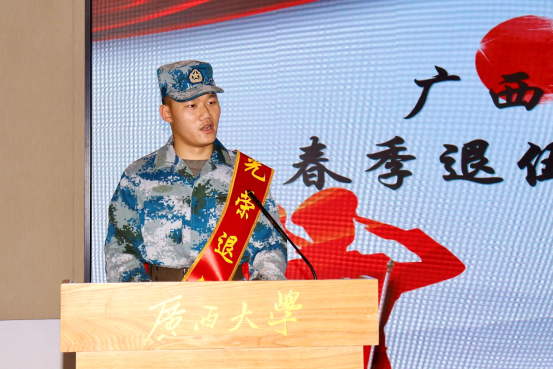 (退伍大学生代表谭天富发言)