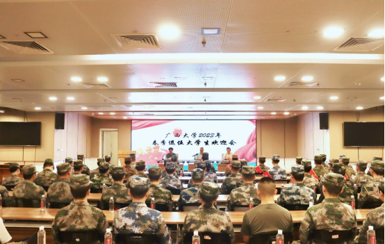 欢迎会伊始,陈榕平老师宣读了2023年春季光荣退伍返校学生名单,16名退伍返校学生意气风发,回应铿锵有力,展现了坚定的意志和锐意进取的精神风貌。随后,胡俊杰部长、王利军副部长为2023年春季退伍大学生佩戴了“光荣退伍”绶带,并发放慰问金。