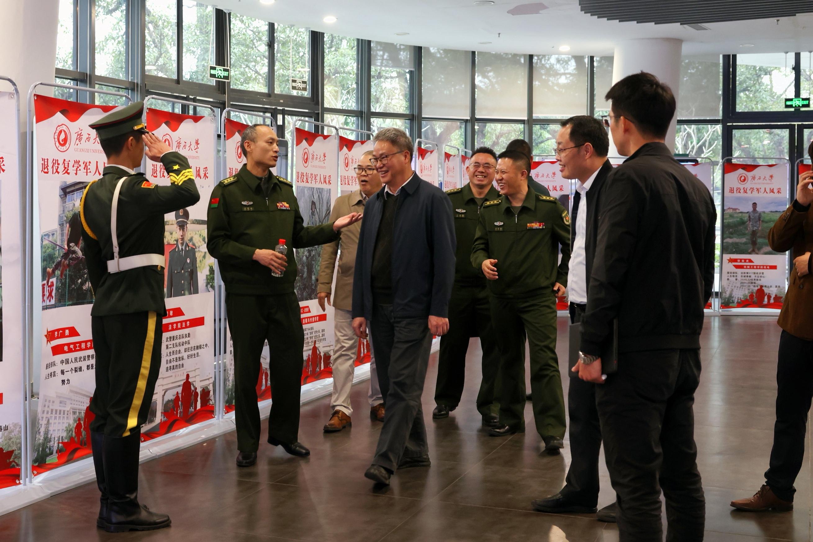 调研组还参观了我校征兵工作站,并与我校退伍大学生亲切交流。