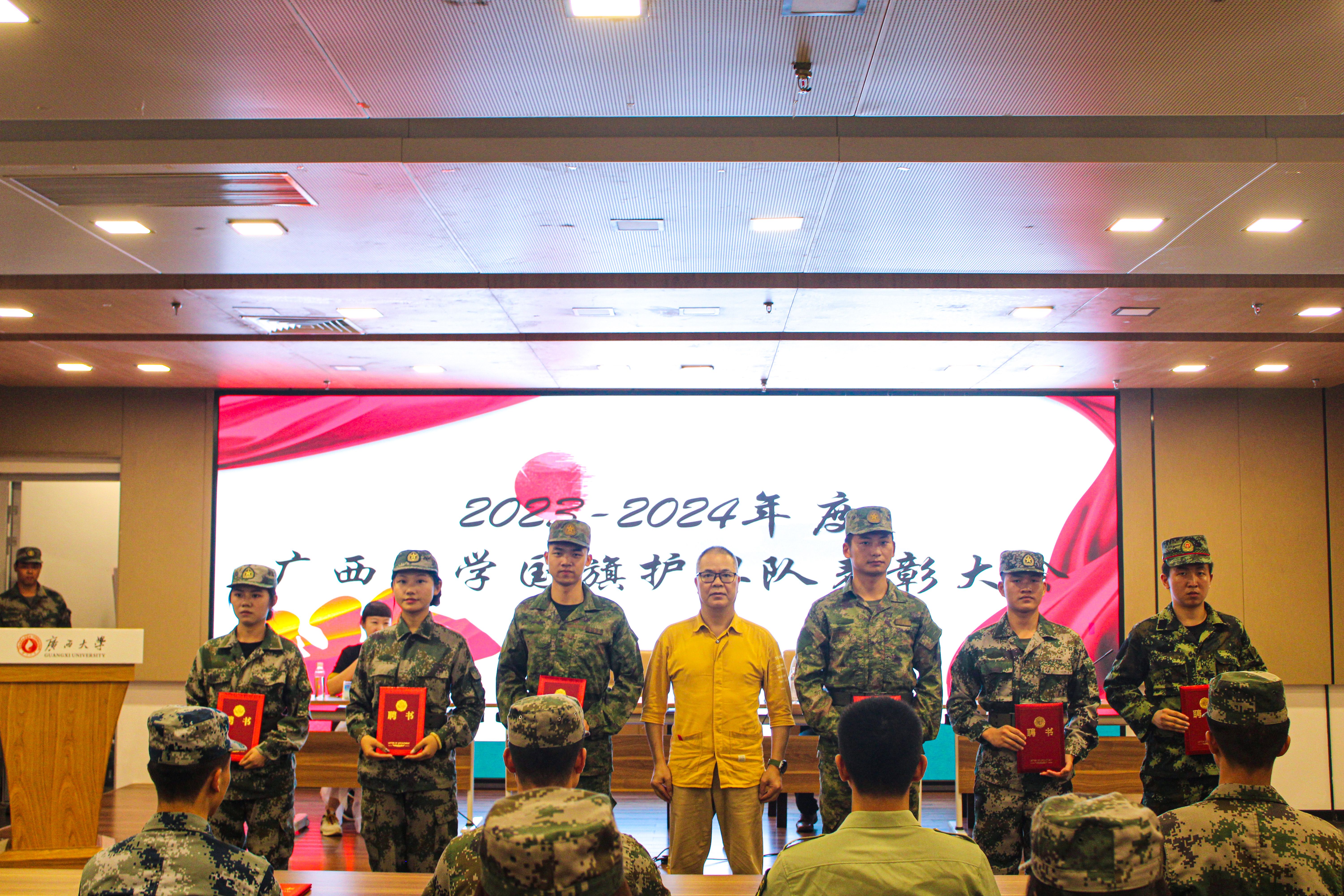 第二阶段,胡俊杰部长为新入队同志发放聘书,新同志们的加入为国旗护卫队增添了新的活力。