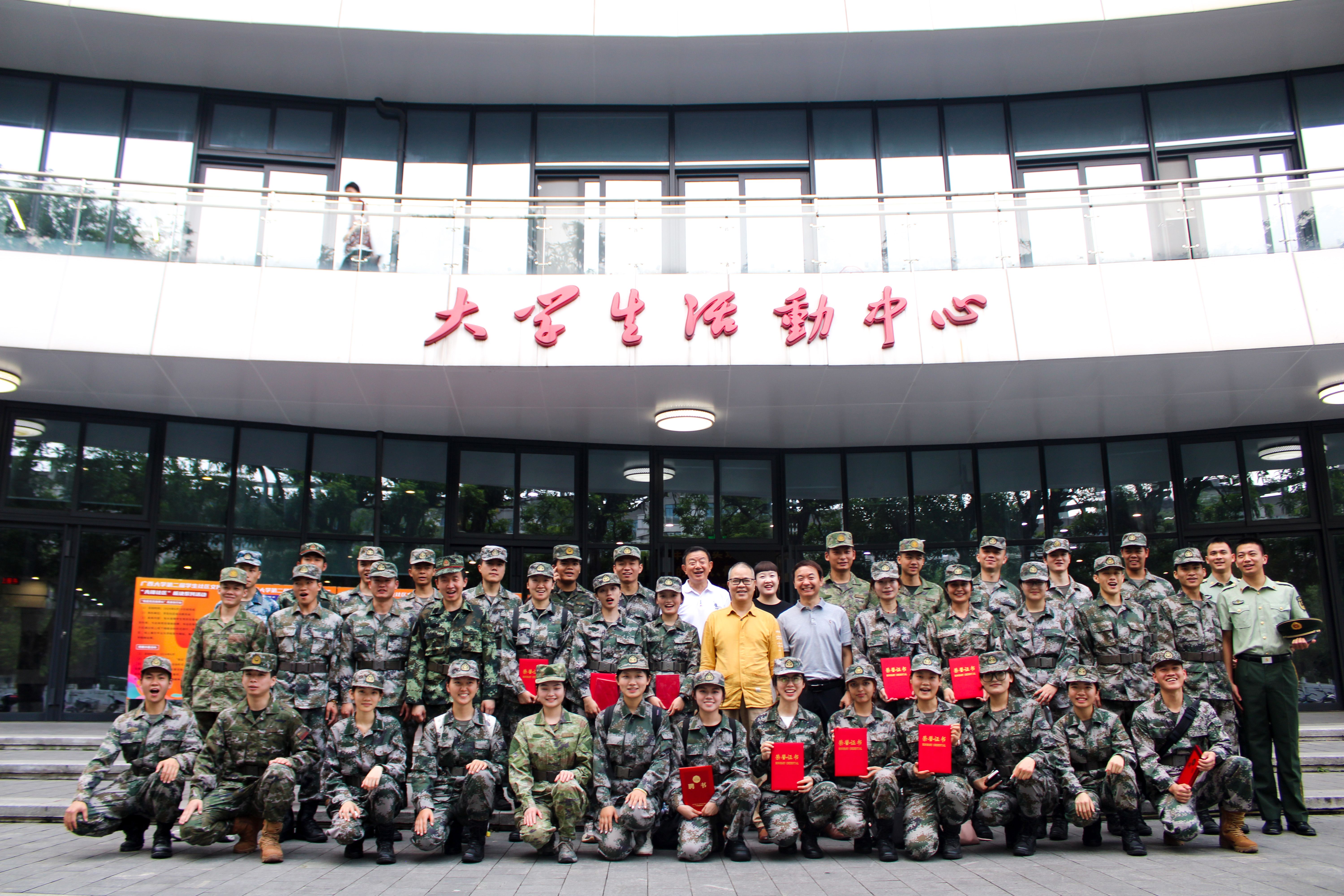 会后,全体参会人员到大学生活动中心门口合影留念,本次表彰、欢迎新队员入队仪式圆满结束。
