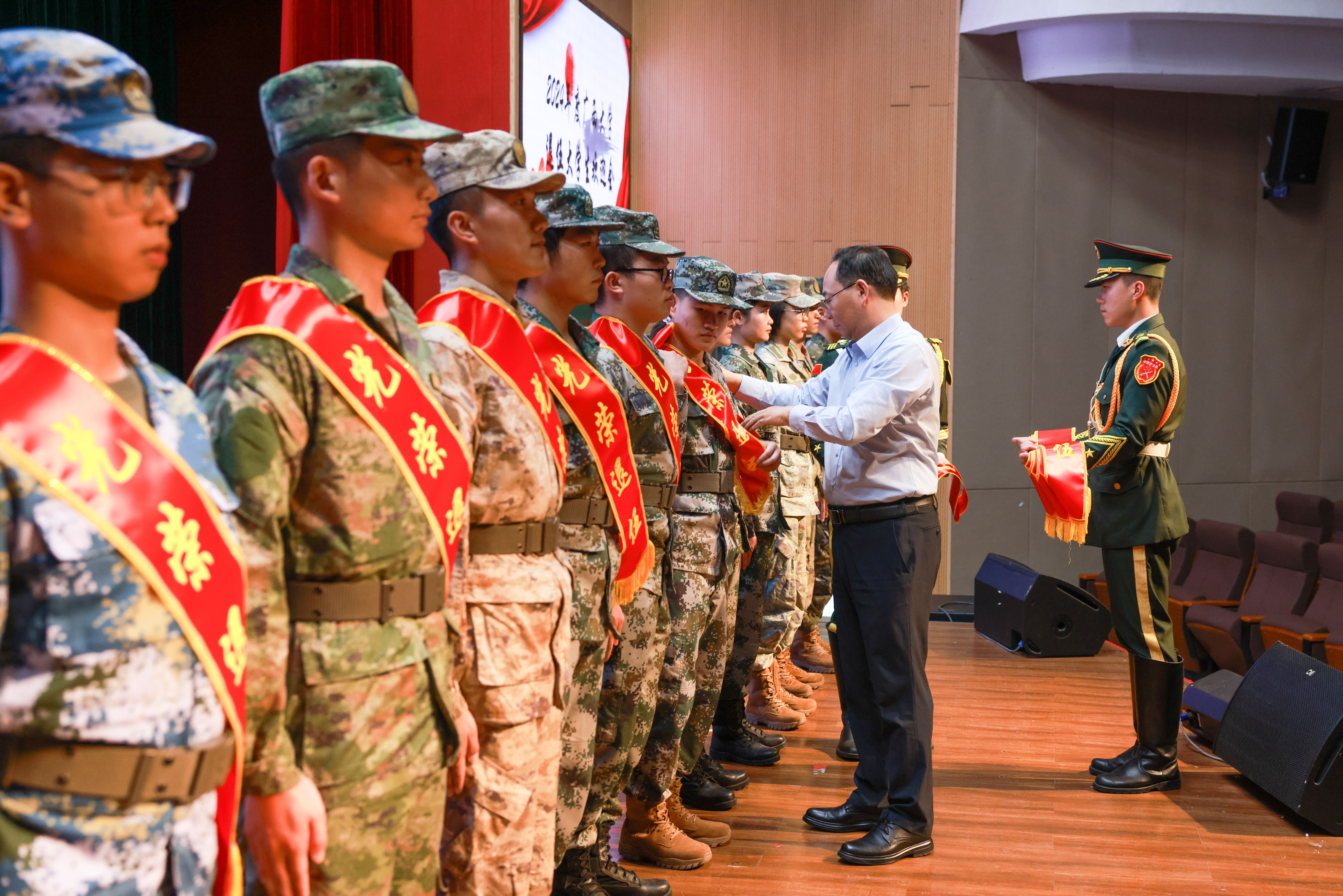 2024年退伍大学生代表梁友舰分享了军旅生涯的经历、体会和收获,并表示这段军旅生涯不仅锤炼了体魄,更塑造了灵魂,他将用实际行动展现新时代退伍大学生的优良作风与青春风采。